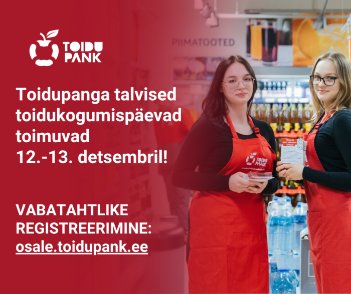 Toidupank korraldab 12. ja 13. detsembril talvised toidukogumispäevad üle Eesti 88 jaekaupluses. Eesmärgiks on koguda kauasäilivat toitu suurenenud toiduvajaduse leevenduseks ja toiduvarude täiendamiseks.